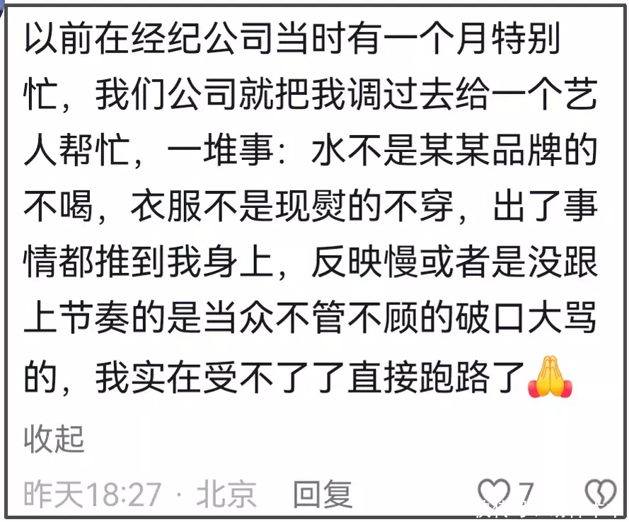 这些工作经历让业内直接对明星祛魅,评论区更是“炸”出了不少知情人和亲历者,揭露了内娱明星不为人知的一面。