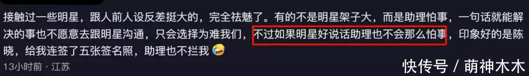 当然了也有一些明星是完全躲在团队身后,“坏人”都是助理和经纪人去当,明星假装成吉祥物。看似什么话都没说,但如果不是明星默许的话,团队成员也没必要针对粉丝和工作人员吧,归根结底还是明星不好说话。